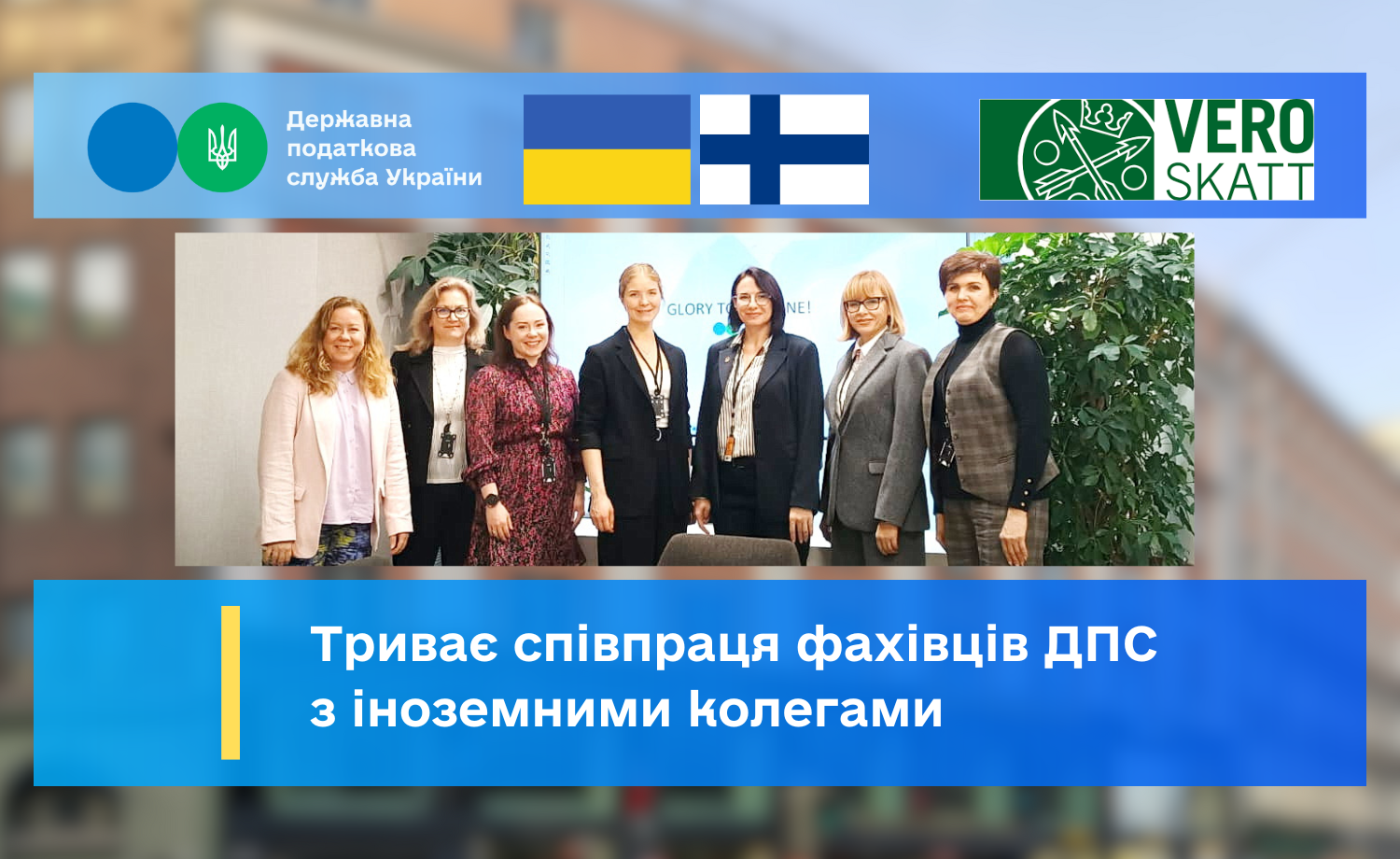 Завершено навчальний візит представників Державної податкової служби України до Фінської податкової адміністрації (VERO). Під час візиту сторони обмінялись найкращими практиками, зокрема, представниками фінської сторони було презентовано підхід VERO до управління проєктами, стратегічного управління та управління змінами.