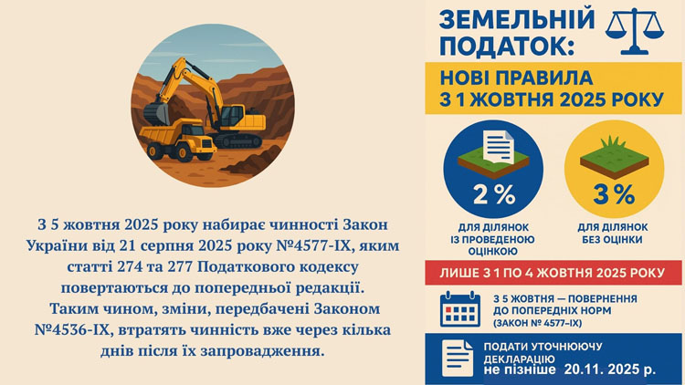 Оскільки протягом короткого періоду (01.10.2025 – 04.10.2025) база оподаткування за земельні ділянки зміниться, платники плати за землю зобов’язані уточнити свої податкові зобов’язання.