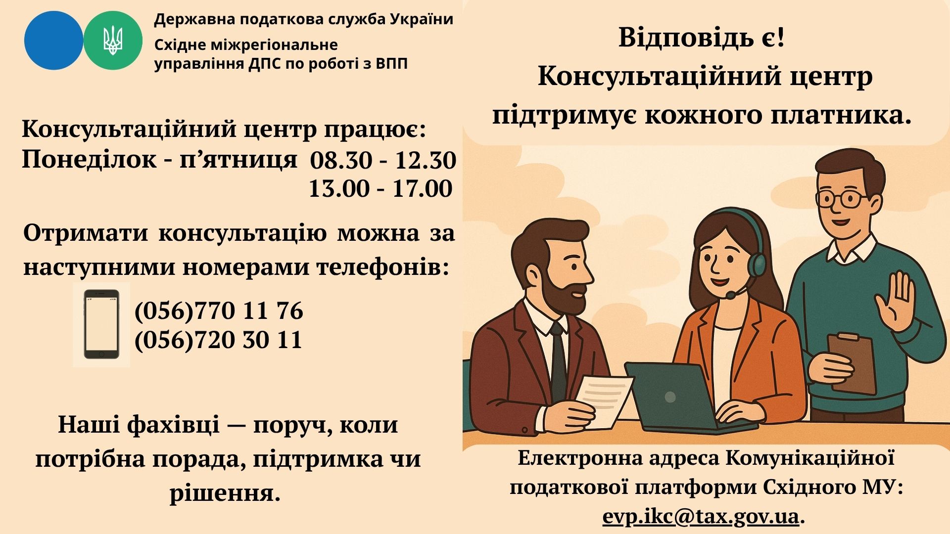 У Східному міжрегіональному управлінні ДПС по роботі з великими платниками податків діє Консультаційний центр, створений для того, щоб підтримати кожного платника.