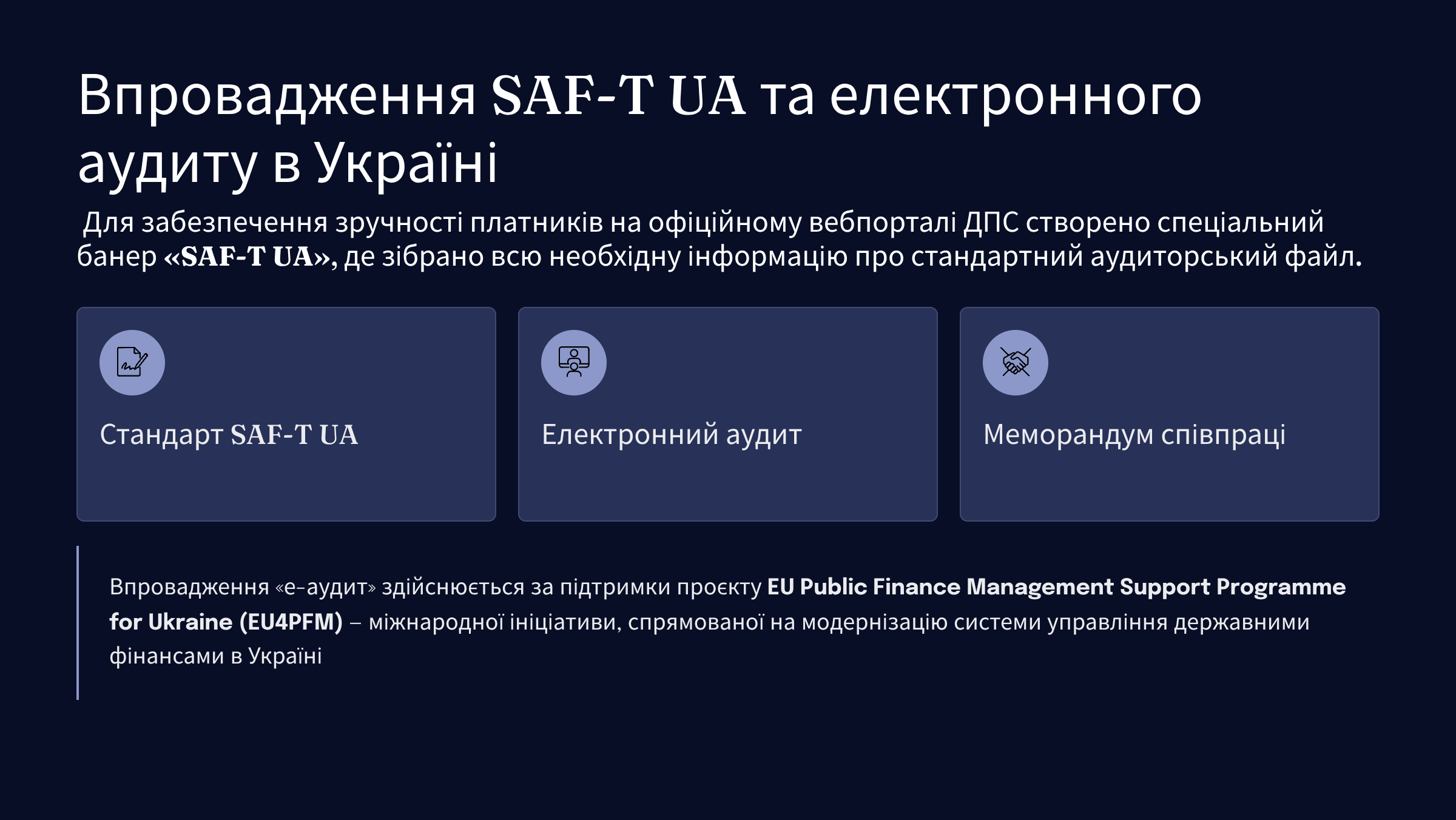 Державна податкова служба України продовжує вдосконалювати систему подання стандартного аудиторського файлу SAF-T UA на основі результатів тестування та зворотного зв’язку від бізнесу.