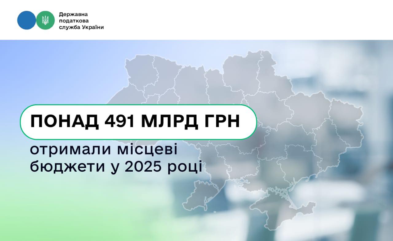 Понад 491 млрд грн податкових надходжень отримали місцеві бюджети у 2025 році. Це на 13,4 % більше, ніж у 2024 році. Про це на своїй сторінці у Facebook  заявила в. о. Голови Державної податкової служби Леся Карнаух.