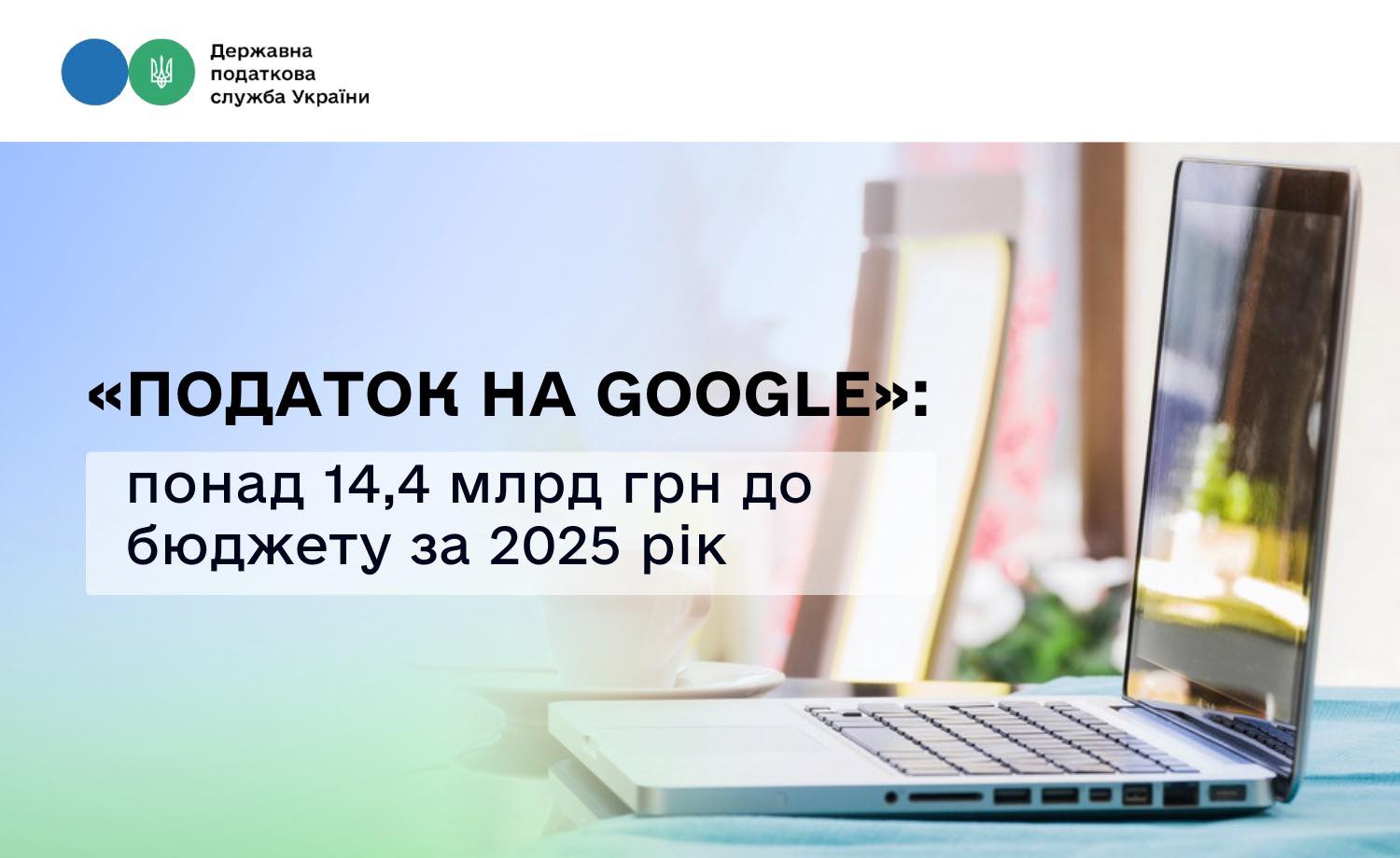 «Податок на Google» у 2025 році приніс до бюджету понад 14,4 млрд гривень. Це кошти, які сплатили нерезиденти, які постачають електронні послуги фізичним особам на митній території України та зареєстровані платниками ПДВ.  Про це на своїй сторінці у Facebook повідомила в. о. Голови Державної податкової служби Леся Карнаух