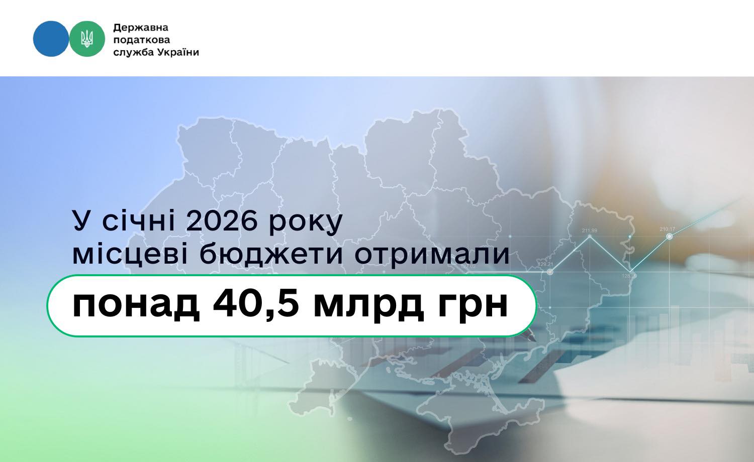 У січні 2026 року місцеві бюджети отримали понад 40,5 млрд грн. Це + 14,2 %, або 5 млрд грн до січня 2025 року.  Про це розповіла в. о. Голови ДПС Леся Карнаух на своїй сторінці у Facebook.