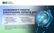 Більш детально про особливості роботи електронних сервісів ДПС 31 грудня 2025 - 2 січня 2026 року, за посиланням: https://tax.gov.ua/media-tsentr/novini/967409.html